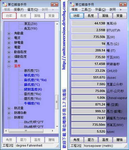 單位轉換手冊1.7 (2008-Q3中文先進版 交叉換算新功能)+中央氣象局即時氣象資料