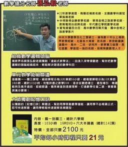 金榜之路國中版 張弘毅國中數學進度+複習課程 繁體中文教學合輯版(DVD17片裝 此套只售1500元 特價品 不再贈片列) -=-=-=-=-=-=-=-=-=-=-=-=-=-=-=-=-=-=-=-=-=-=-=-=-=-=-=-=-=-=-=-=-=-=-=-= 軟體名稱:金榜之路國中版 張弘毅國中數學進度+複習課程 繁體中文教學合輯版(DVD17片裝 此套只售1500元 特價品 不再贈片列) 語系版本:繁體中文教學合輯版 光碟片數:17片裝 破解說明: 系統支援:Windows 7/XP/Vista/DVD 播放機 軟體類型:命題題庫補習班國中高中研究所各科教學 硬體需求:PC,DVD 播放機 更新日期:2011-11-25 官方網站: 中文網站: 軟體簡介: 銷售價格:$1500元 -=-=-=-=-=-=-=-=-=-=-=-=-=-=-=-=-=-=-=-=-=-=-=-=-=-=-=-=-=-=-=-=-=-=-=-=     軟體簡介: 【內容說明】★◇以下中文譯文說明僅供參考,實際軟體內容請依參考網址介紹為準◇★ 寓教於樂的精采內容,縱橫寰宇的豐富題材,史無前例的創新價格!全球最受歡迎的節目,履獲 世界頂級國際大獎一再肯定,一流專業製作水準為您捕捉瞬間奇景!內容生動充實啟發多元化思 考,影片題材豐富多樣帶您縱橫天地,國內外專家學者教學引用的第一選擇! 數學教材內容大綱 單元1 整數、絕對值與等量公理(上)(下) 單元2 最大公因數與最小公倍數(上)(中)(下) 單元3 一元一次方程式 單元4 二元一次聯立程式 單元5 直線座標與二元一次方程式的圖形(上) 直線與一次不等式(下) 單元6 分數的四則運算與比例(1) 分數的四則運算與比例(2) 分數的四則運算與比例(3) 分數的四則運算與比例(4) 單元7 近似值與方根 單元8 乘法公式與多項式 單元9 因式分解 單元10 一元二次方程式(上)(下) 單元11 一次函數及其圖形 單元12 二次函數(上)(下) 單元13 方程式與函數多項式(上)(下) 單元14 簡單幾何圖形(上) 簡單的對稱圖形與圖形變換 單元15 三角形的基本性質 單元16 平行 單元17 相似形(上)(下) 單元18 圓(上)(中)(下) 單元19 幾何與證明(上)(中)(下) 單元20 等差數列與等比數列(上)(下) 單元21 資料處理與機率(上) 抽樣與機率(下) 單元22 簡單邏輯與集合 ●數學基本學測考題觀摩(1) ●數學基本學測考題觀摩(2) -=-=-=-=-=-=-=-=-=-=-=-=-=-=-=-=-=-=-=-=-=-=-=-=-=-=-=-=-=-=-=-=-=-=-=-=